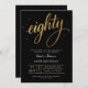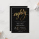 Invitación Elegant Black & Gold Script Eighty 80th Birthday