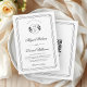 Elegant black and white branch, initials and QR code wedding invitation. This elegant black and white wedding invitation combines a branch motif, your initials, and a QR code. Bring timeless sophistication to your wedding with this thoughtfully designed piece. The front showcases a stylish circle with delicate branches and the couple’s initials above custom text, all framed by a crisp triple black border. The reverse features a QR code for effortless RSVP responses.