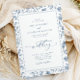 Add timeless elegance to your special day with this chinoiserie-inspired wedding invitation, featuring a delicate blue floral toile border and elegant script.