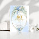 Invitación Elegant Blue Floral Gold 80th Birthday Invitation