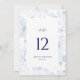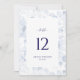 Invitación Elegant Blue Floral Wedding Table Number Card