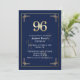 Invitación Elegant Blue Gold 96th Birthday Party