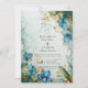 A refined botanical design featuring hand-painted blue lilies, soft sage textures, and shimmering gold accents. Vintage florals blend with a modern romantic palette, creating an elevated look perfect for an elegant garden or outdoor celebration. Subtle marble undertones and intricate detailing frame your event text beautifully, offering a timeless, graceful, and sophisticated aesthetic. Ideal for couples who love artistic, nature-inspired styling with a luxurious touch.