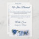 This romantic, vintage-inspired wedding suite features soft blue and white watercolor roses paired with navy blue classic cameo-style silhouette portraits of a couple framed in ornate oval borders. The refined navy blue calligraphy and clean white background create a timeless, elegant aesthetic reminiscent of the Regency era inspired romance. Perfect for Regency, vintage, classical, or garden-style weddings.