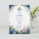 Elegant Digital Watercolor Blue Shades Floral Frame Arch Shape Baptism Invitation Cards.