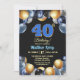 Invitación Elegant Blue Silver Gold 40th Birthday Party