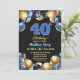 Invitación Elegant Blue Silver Gold 40th Birthday Photo
