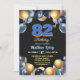Invitación Elegant Blue Silver Gold 82nd Birthday Photo