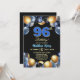 An elegant modern design featuring blue 96 number with gold edges and balloons with silver, blue and gold glitter. Customize the details for a unique and chic Birthday Celebration.