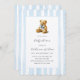 Invitación Elegant Blue Stripes Teddy Bear Baby Shower
