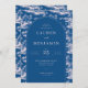 This is a classic style image featuring an elegant wedding invitation with a deep blue background adorned with intricate white floral patterns. The text, presented in a sophisticated serif font, announces the union of Lauren and Benjamin on May 23, 2026, at Willowbrook Estate in Atlanta, Georgia. The design exudes timeless elegance and romance, making it perfect for setting the tone for a beautiful and memorable celebration. It invites guests to join in dinner and dancing, promising an evening filled with joy and festivity.