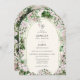 A romantic watercolor garden wedding invitation featuring lush blush blossoms, elegant greenery, and a personalized monogram. This enchanting invitation features a hand-painted garden archway, delicate pink and blush flowers, graceful greenery, and refined seating details that create the perfect blend of artistry and sophistication. Ideal for outdoor, botanical, and spring weddings. Easily customize names, details, and fonts for your perfect celebration.