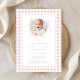 Elegant Blush Pink Gingham Photo Girl Baptism Invitation. For best results upload a square image of the baby.
