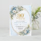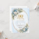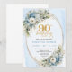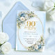 Invitación Elegant Boho Dusty Blue Floral Gold 90th Birthday