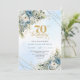 Invitación Elegant boho dusty blue florals gold frame 70th
