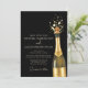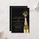 An elegant black and gold Wedding Invitation design featuring a popping champagne bottle, symbolizing celebration and timeless romance. The dark background paired with golden accents creates a luxurious, modern wedding aesthetic perfect for formal, evening, or upscale city weddings. Ideal for couples seeking a classy yet bold announcement that sets the tone for a chic and memorable wedding celebration.