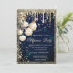 Invitación Elegant Christmas Balls Drips Gold Blue Christmas