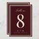 Invitación Elegant Deep Red Wedding 5x7 Table Number Card