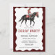 This vintage-inspired design features a detailed jockey and horse illustration with a rich burgundy frame, ideal for sophisticated events and upscale parties.