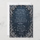 Your love is special and so should your wedding invitation, elegant and beautiful dark blue background with white filigree edges on the front and back of the invitation. You have a choice of no envelopes, white envelopes or addressed envelopes. You may also choose standard printing or high definition with slight increase in cost. Click on the Edit Design button to begin editing the front and back of the invitation with your choice of font style and color.