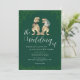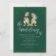 Dark Emerald Green and White Dinosaur Wedding Invitation Fun Modern T-Rex Bride and Groom Design