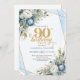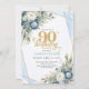 Invitación Elegant dusty blue blooms 90th birthday invite