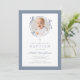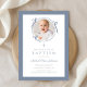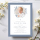Elegant Dusty Blue Bow Photo Baptism Invitation. For best results upload a square image of the baby.