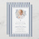 Invitación Elegant Dusty Blue Bow Photo Boy Baptism