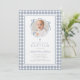 Invitación Elegant Dusty Blue Gingham Photo Girl Baptism
