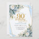 Invitación Elegant dusty blue gold frame floral 90th birthday