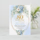 Invitación Elegant Dusty Blue Peonies Gold Boho 80th Birthday