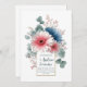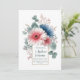 Invite your guests with the modern elegance and romantic charm of this beautiful wedding invitation. The design showcases a stunning, painterly watercolor bouquet gracefully arranged around a central frame, set against a crisp white background. Gorgeous Gerbera daisies bloom in sophisticated shades of dusty blue and soft blush pink with white, displaying their detailed centers. This exquisite arrangement is artfully interwoven with airy sprays of delicate pink filler flowers and abundant dusty blue-green eucalyptus leaves, creating a fresh, contemporary, and romantic feel. A minimalist, thin gold rectangular frame provides a perfect, clean space for your event details. Ideal for spring or summer weddings with a modern floral theme, this invitation design is also perfect for sophisticated bridal showers, garden parties, anniversary celebrations, or milestone birthday events. This versatile design can also be adapted for stylish corporate events, seasonal promotions, or elegant announcements requiring a touch of refined floral beauty.