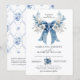 Invitación Elegant Dusty Blue White Rose Floral Bow Wedding