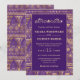 This luxurious design features a deep purple backdrop adorned with intricate Egyptian‑inspired gold patterns, creating a regal and culturally rich aesthetic perfect for a wedding celebration. The ornate motifs, geometric detailing, and shimmering metallic accents evoke a sense of history, artistry, and grandeur. The overall mood is elegant, symbolic, and sophisticated—ideal for couples seeking a bold, heritage‑inspired visual style for their special occasion.