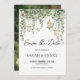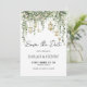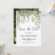 This save the date card features softly glowing lanterns, cascading eucalyptus greenery, and delicate botanical details that create a romantic garden atmosphere for your celebration. The gentle sage palette and natural foliage accents offer a warm and inviting introduction to your wedding, giving guests a beautifully coordinated preview of the event. You can personalize every detail, including adding your own photo to the back for a memorable touch. It pairs perfectly with the matching pieces in the full stationery suite.