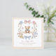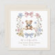 Embrace a gentle and heartwarming theme with this teddy bear baby shower invitation, designed with a sophisticated neutral color palette. A sweet teddy bear is at the center, encircled by a delicate floral wreath in soft, muted tones. Subtle pastel blooms and greenery create a vintage-inspired frame, exuding warmth and tenderness. The phrase 'We can bearly wait for [Name]'s Baby Shower' is presented in a beautiful script font, making it a perfect choice for announcing a baby shower for either a boy or a girl. This design offers a timeless charm for your special celebration.