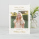 The reverse side of the invitation offers two additional photo templates, allowing you to share more cherished memories. This feature provides a comprehensive view of your journey, highlighting the moments that led to your success. The soft beige background offers a serene and inviting canvas, creating a warm and elegant atmosphere that perfectly complements the golden text and delicate frame.