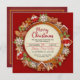 Invite your guests to a warm and wonderful holiday celebration with this charming Gingerbread Christmas invitation card. The festive design features a beautiful wreath composed of classic gingerbread men, gingerbread houses, sugar-glazed snowflakes, and elegant white poinsettias. Set against a rich burgundy red background, the central circle holds your personalized party details—including the date, time, location, and RSVP information. This card is perfect for a holiday baking party, a cozy Christmas dinner, or any festive winter gathering.