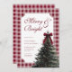 Invitación Elegant Gingham Red Bow Christmas Dinner Party