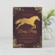 Invite your guests to a sophisticated and exclusive Kentucky Derby event with this stunning invitation featuring a shimmering gold horse silhouette against a deep burgundy background. Adorned with intricate vintage filigree borders and elegant script typography, this design exudes old-world charm and luxury.