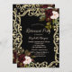 Invitación Elegant Gold Frame Burgundy Roses Black Retirement