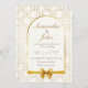 Timeless and sophisticated wedding invitation featuring a gold geometric pattern background and a smooth arch frame around your names and wedding details. The warm ivory center and script typography create an elegant, formal feel that suits classic, modern, and Art‑Deco‑inspired celebrations. On the back, an arched photo window and gold brush‑stroke initials area let you personalize the card with your engagement or couple portrait for a polished, keepsake‑style invite.