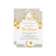 Invite your loved ones to a beautiful breaking of the fast with this elegant Iftar invitation. This design features glowing 3D gold lanterns suspended over a crisp white background with intricate grey and gold Islamic geometric patterns. A central crescent moon and star complete this sophisticated look. Perfect for Ramadan dinner parties, community Iftar events, or Eid celebrations. Fully customizable to include your specific time, date, and location.