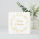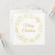 Elegant square invitation for a Christmas party, with a golden illustration of a wreath made from leaves, berries and pine cones. Easy to personalize, perfect to invite with style your people to celebrate together the upcoming holiday season.