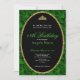 This elegant emerald green and gold floral 18th birthday debut invitation has roses, a gold tiara crown, and a gold glitter oval with a personalizable template to create your own message. The invitation template is customizable in the listing editor and is also available as a digital download that's printable after you personalize it. The back has sage green roses covering the entire surface to create and classic and classy mood for your event.