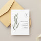Set the tone for a refined and romantic celebration with this elegant botanical wedding invitation. A soft watercolor-style greenery branch creates a natural, airy feel, beautifully balanced with clean typography and a minimalist layout. A modern monogram accent adds a personal, timeless touch, making this design ideal for couples who love understated sophistication.