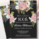 Start this special 100th birthday celebration in a elegant style with this beautifully hand painted invitation with colorful yet gentle flowers -- leading with blush pink and greenery, yet adding interesting other touches of color striking against an all black background.. All of the text can be personalized for your party including the guest of honor's age. If you have any special requests or require design assistance, just send a chat and we'll be delighted to assist. (The floral artwork is from www.createthecut.com)
