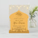 This elegant invitation features a golden mosque silhouette and glowing hanging lanterns against a traditional Islamic geometric pattern background. Perfect for hosting an Iftar dinner, Aqiqah, Eid celebration, or any Islamic community gathering. The warm yellow and cream tones provide a sophisticated and welcoming feel for your guests. Fully customizable text areas.