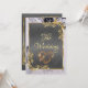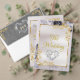 This elegant wedding announcement features a grey center on a black and white marble background, framed with gold roses and leaves, embellished with a gold scroll heart. Designed to coordinate with the "Elegant Marble, Gold Leaves Frame & Scroll Heart" Wedding Collection. To change details, click «Personalize». To move the text or change the text size, font, or color click «Click to customize further»