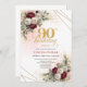 Invitación Elegant Marsala Floral Gold Frame 90th Birthday